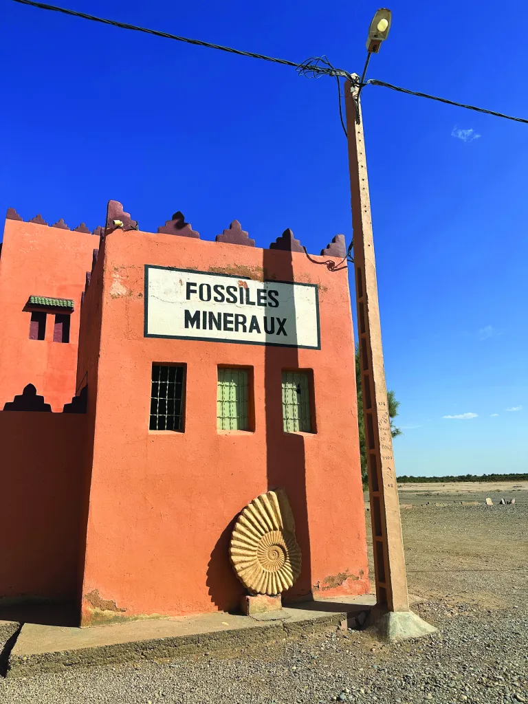 Çöle varmadan önce son durağınız milyonlarca yıllık fosillerin sergilendiği ve satıldığı bir kooperatif olmalı. Bu yol kenarı mağazaları turistik bir tuzak olarak görmeyin; çölde yaşamını sürdürmeye çalışan halkın turizm dışında kalan yegane geçim kaynağı bu ve içeride karşılaşacaklarınız gerçekten şaşırtıcı. Neredeyse milyar yıl önce okyanus altında kalan bu bölgede 570 milyon yıl önce yaşamış yüzen dev hamam böceklerini andıran Trilobit fosillerini, 360 milyon sene önce görülen ve şekli kalamara benzeyen Orthoceras canlılarının mineraller içine sıkıştırılmış kalıntılarını bulacaksınız. Bu fosillerin bir anı olarak eve götürmek için fazla iddialı olduğunu düşünüyorsanız çöl gülü adı verilen kristalize olmuş kalsiyum sülfat taşlarından birini yanınıza alın. Yerliler, çöl gülünün iyileştirici gücüne inanıyor.